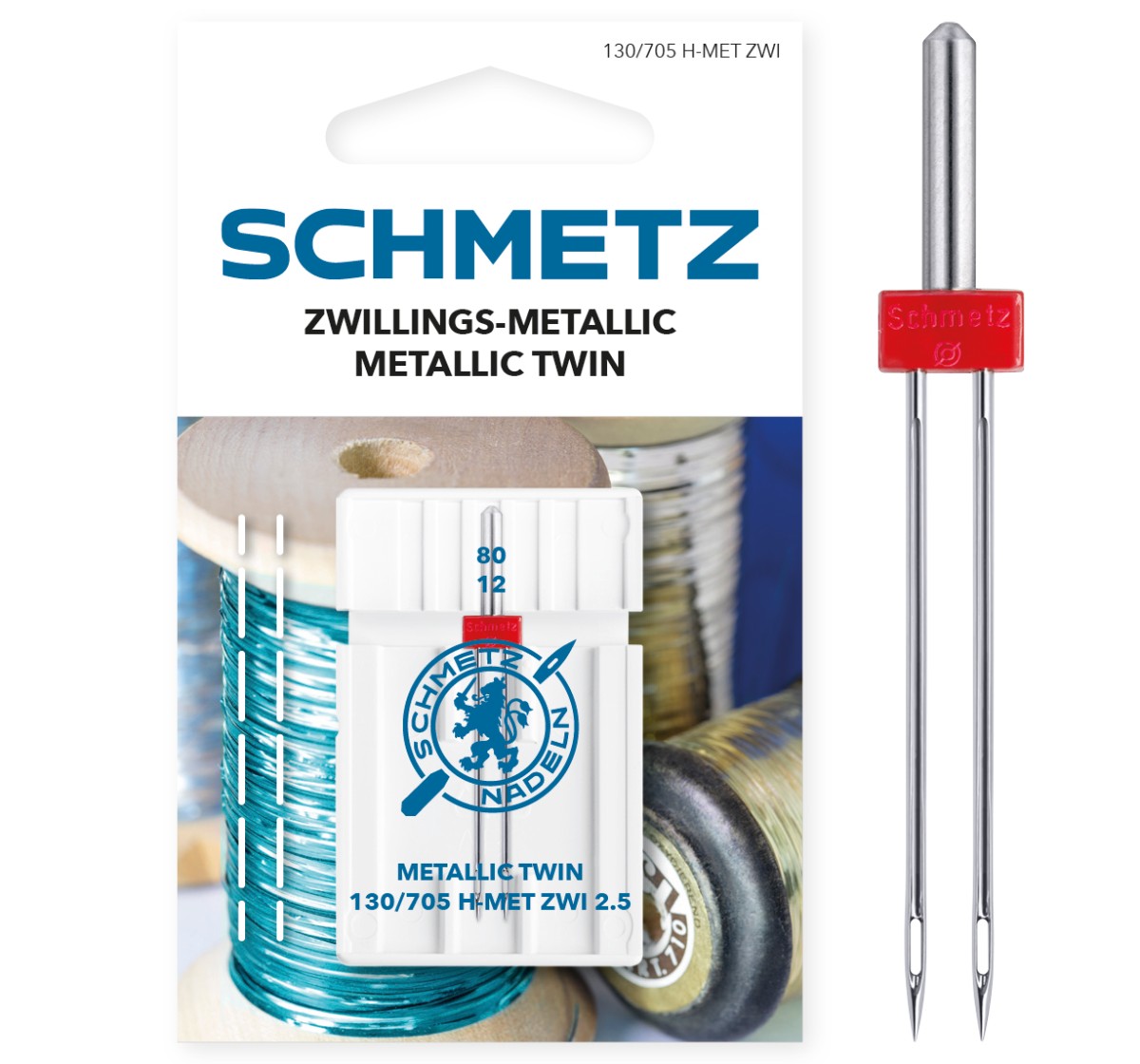 L’aiguille métallique jumelle convient à la couture décorative et à la couture de points décoratifs avec des fils métalliques.