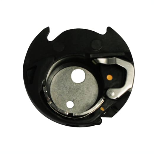 Ce support pour canette off re la meilleure tension pour la broderie automatique. Utilisez un fi l spécialement conçu en tant que fil de canette pour parfaire vos résultats. Cette capsule se différencie des autres par une petite flèche jaune.