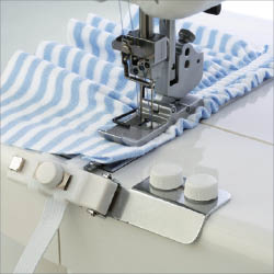 Il faudrait une troisième main pour poser un élastique facilement! Grâce à cet accessoire, vous n’aurez plus aucune difficulté. La plaque blanche retient l’élastique et le tend uniformément juste avant la couture.
