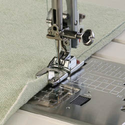 Ce pied est idéal pour effectuer aisément un ourlet délicat pour la confection. La spirale située sur le pied guide le bord du tissu pour créer un ourlet roulé. Recommandé pour les tissus fins et légers. Ce pied vous permet de créer des ourlets roulés de 4 mm de largeur.